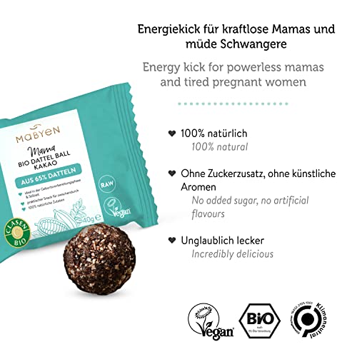 MABYEN Bio Dattel Balls Cocoa, Energy Balls, energy rule for moms and pregnant women, 12 pieces