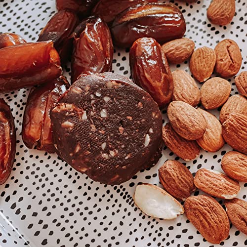 Ingrediënten: Datteln* 65,9%, amandeln*, cacaopoeder * 4%, cacao nibs * 3%, cacaoboter * 2%, zeezout.