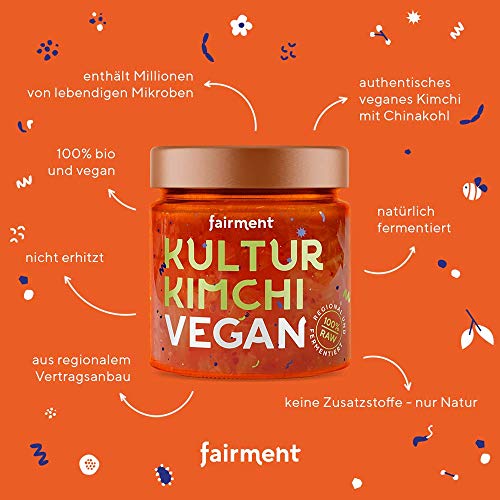 Fairment Kimchi veganistisch, levendige biologische kimchi in glas met chinokool, volgens Koreaans recept, natuurlijk gefermenteerd en niet gepasteuriseerd